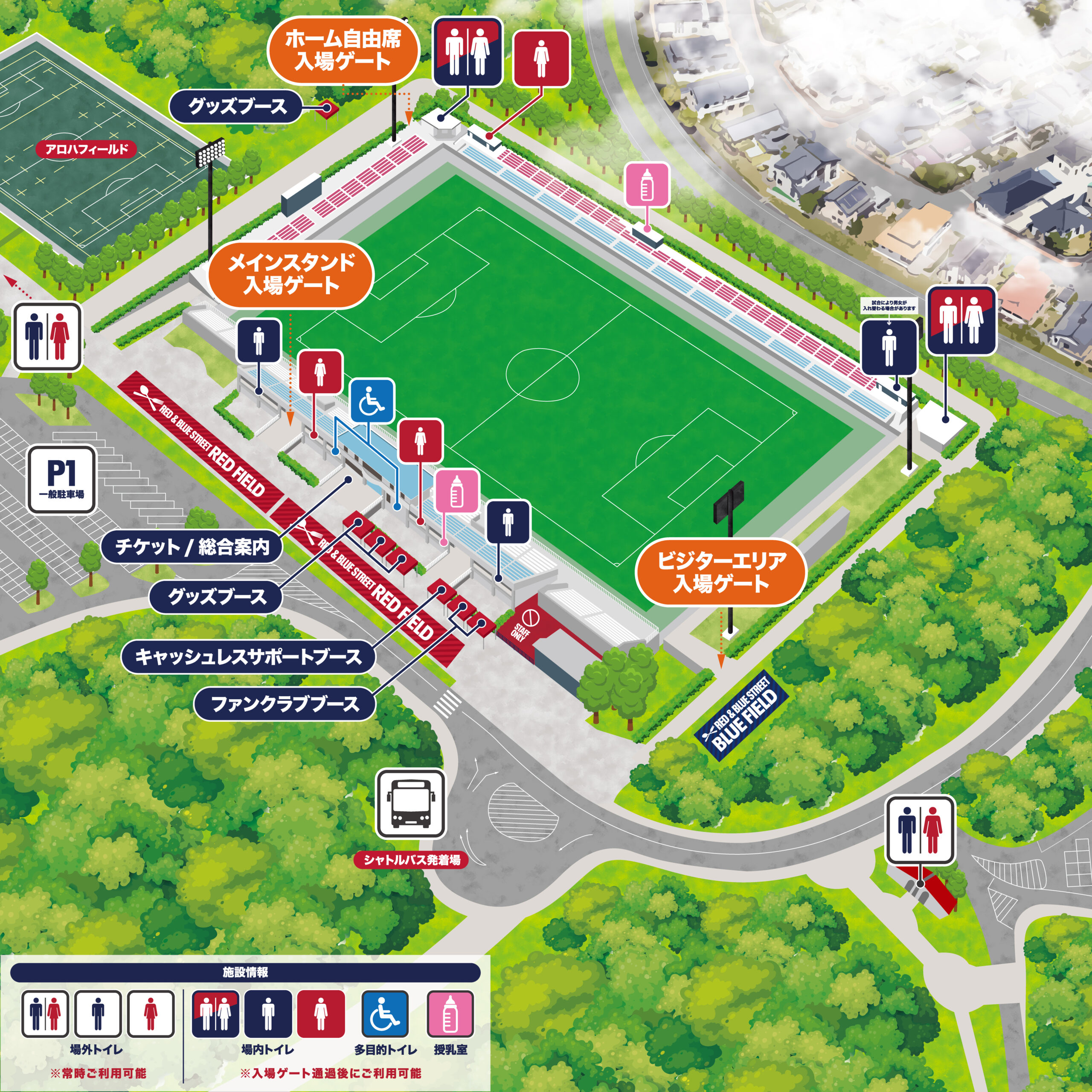・駐車場について、車いす席のチケットを駐車場入口にてご提示をお願いいたします。(ピッチサイド車いすエリアをお申込の場合は別途駐車証をお送りさせていただきます)
