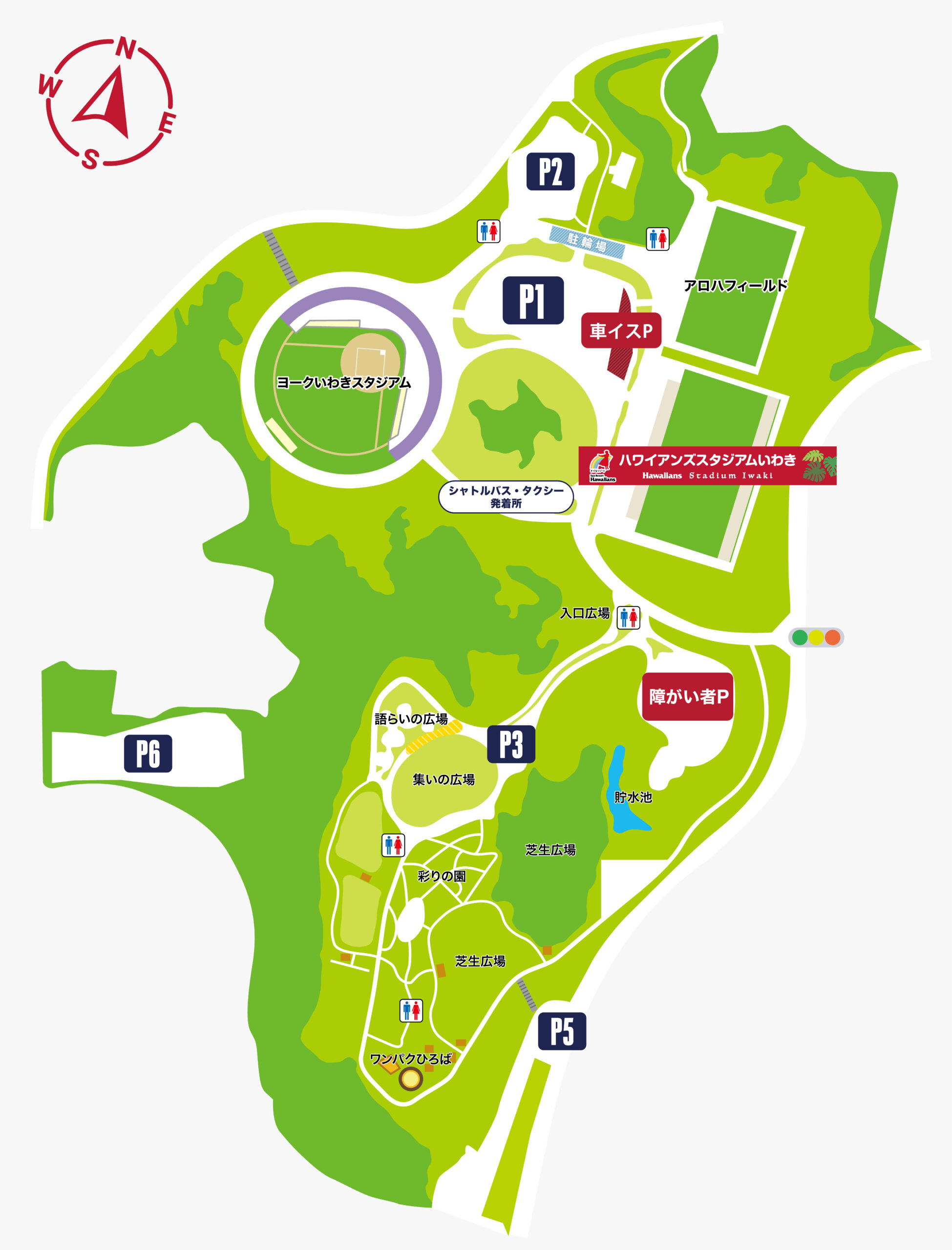 ハワイアンズスタジアムいわきには、メインスタンド Fブロック 内に5席、Lブロック内に5席に「車イスエリア」を設置しております。ご利用の方は、Jリーグチケットよりチケットをご購入ください。