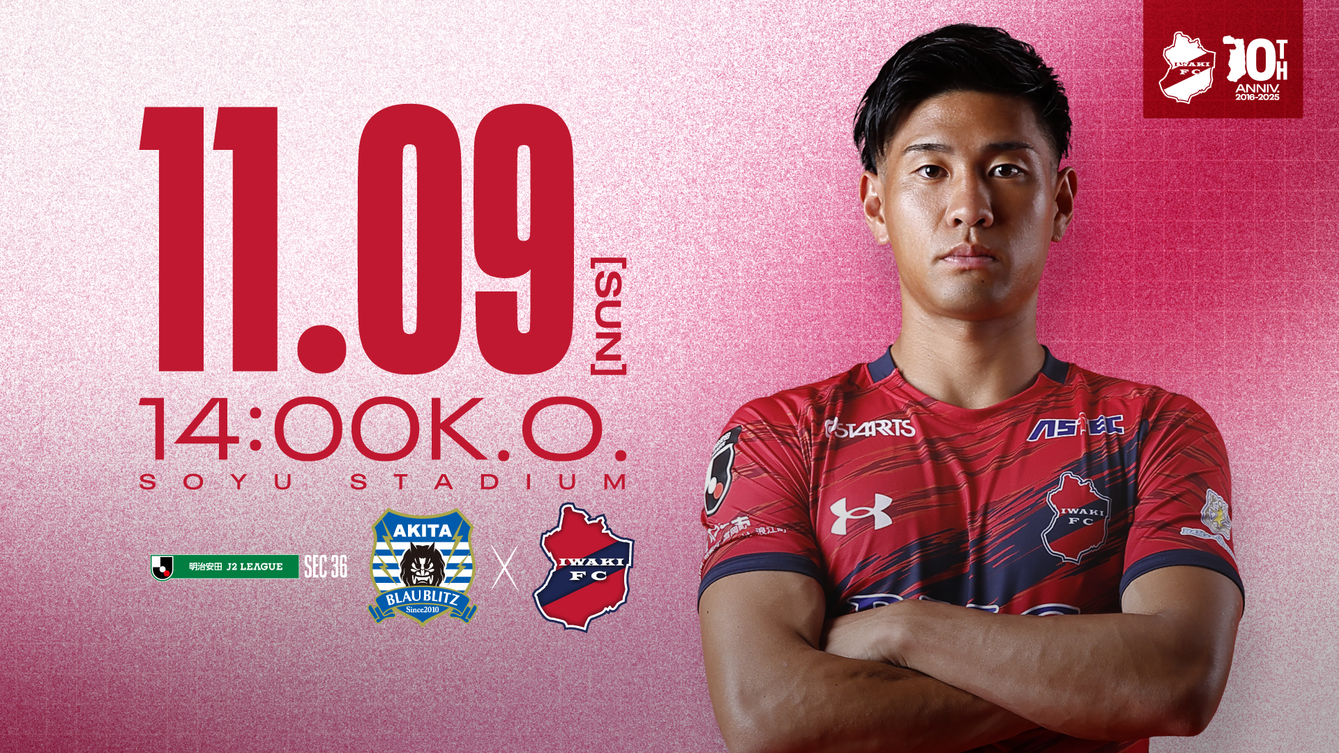 11月9日(日)アウェイにて開催される、2025明治安田J2リーグ 第36節 vsブラウブリッツ秋田の試合情報をお知らせいたします。