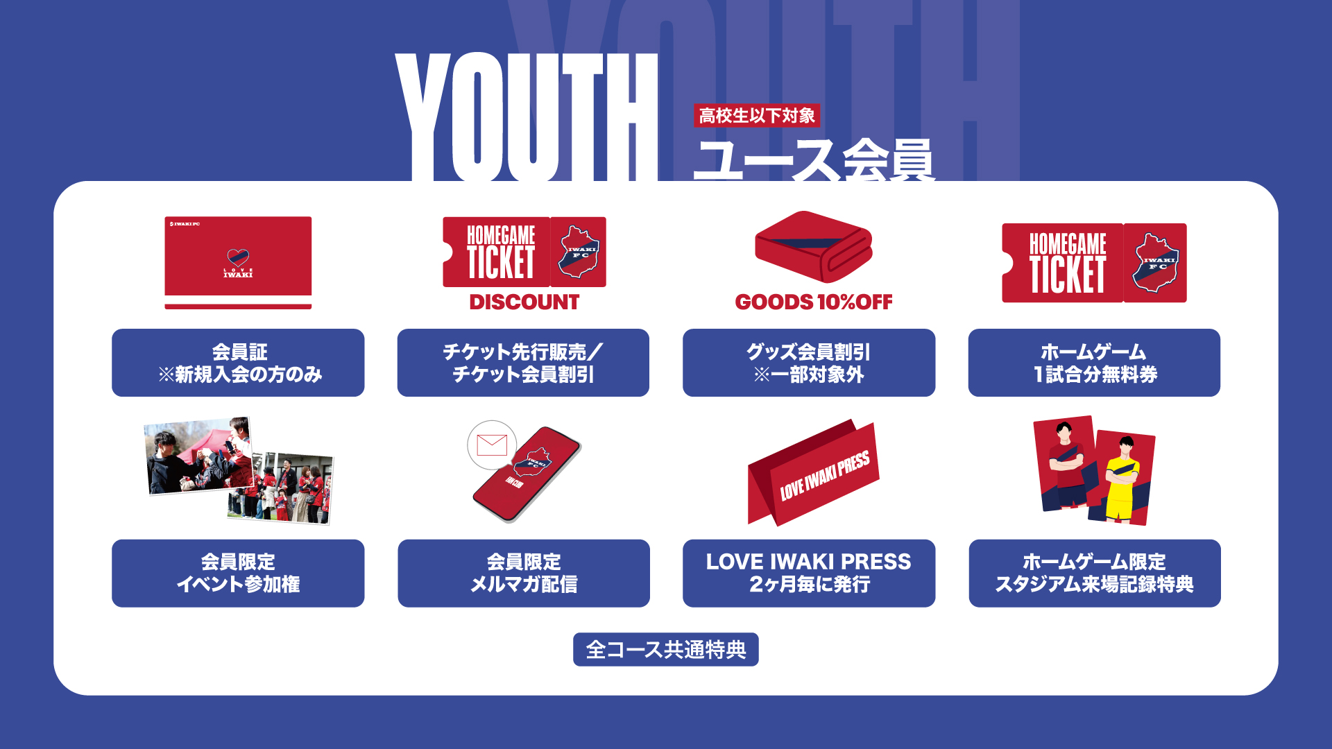 ・ユース会員、高校生以下のシーズンチケット対象者は「2026年4月時点で高校3年生以下の方」が対象となります。2026年3月に高校卒業見込みの方は、大人でお申し込みください。