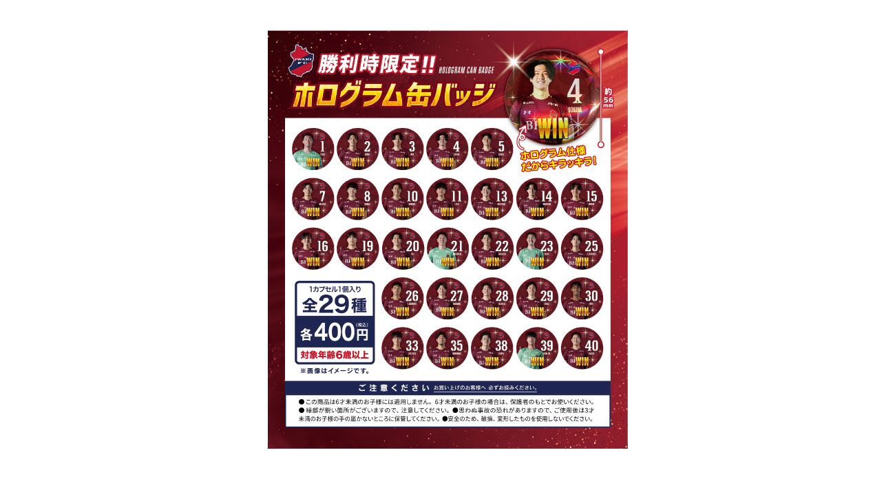 ・勝利時限定の商品となり、試合会場限定となります。