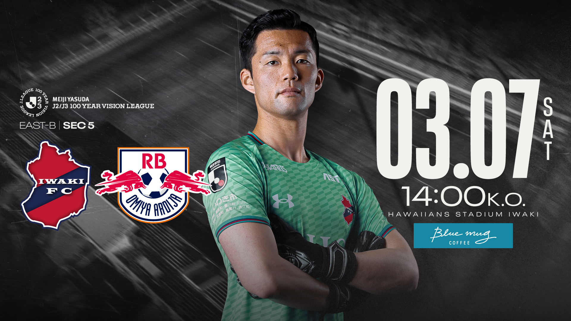 このたび、いわきFCは、3月7日(土)に開催される明治安田J2・J3百年構想リーグ 地域リーグラウンド EAST-B 第5節 RB大宮アルディージャ戦を「BLUE MUG COFFEEプレゼンツマッチ」として開催いたしますので、お知らせします。