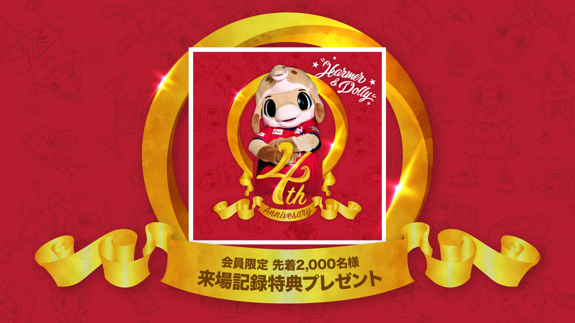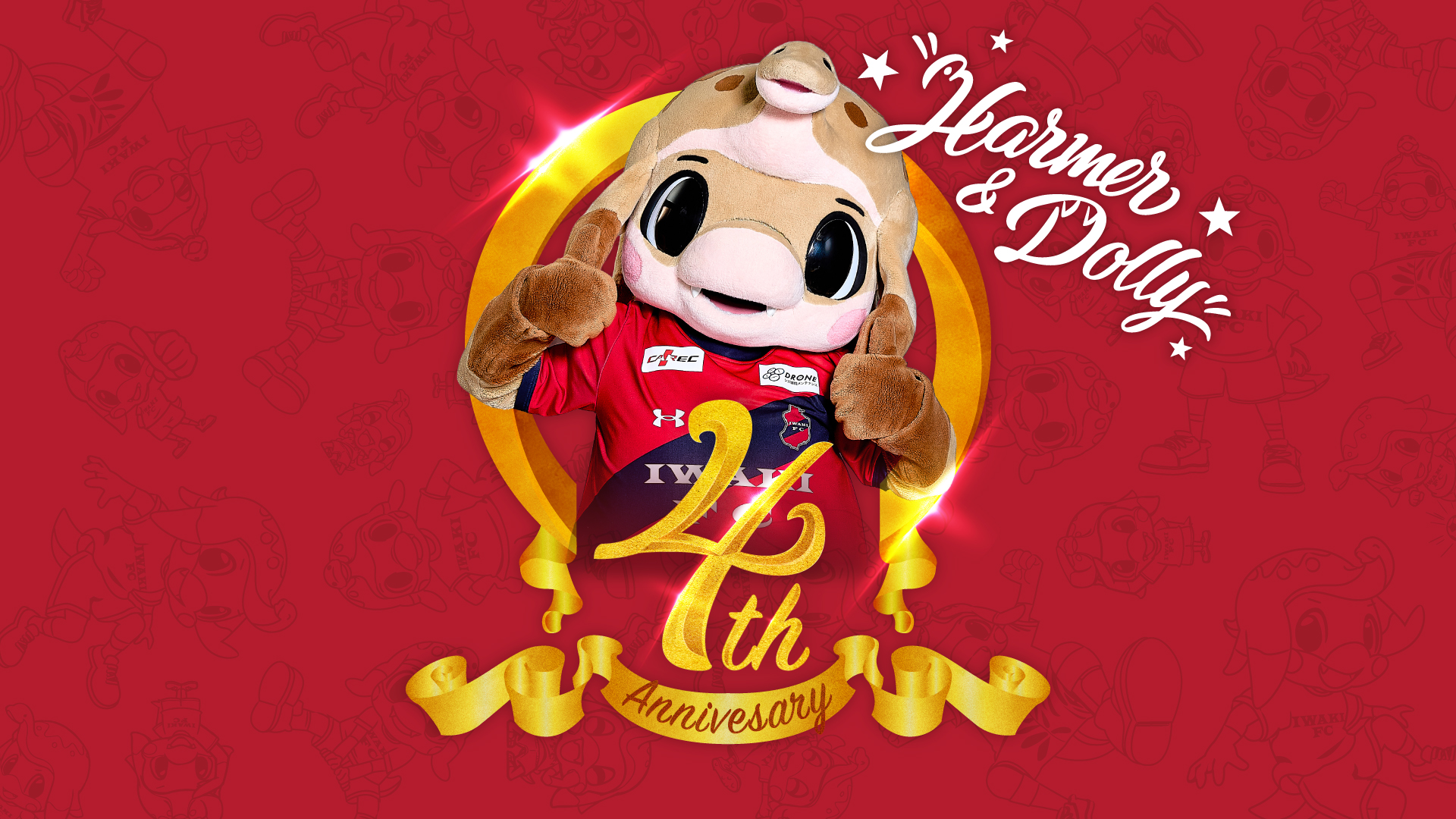このたび、いわきFCは、3月20日でハーマー&ドリーがクラブ公式マスコットキャラクターに就任して4周年になることを記念して、3月29日(日)に開催される、明治安田J2・J3百年構想リーグ 地域リーグラウンド EAST-B 第8節 ジュビロ磐田戦にて、ハーマー&ドリー マスコット就任4周年記念イベントを実施いたしますので、お知らせします。