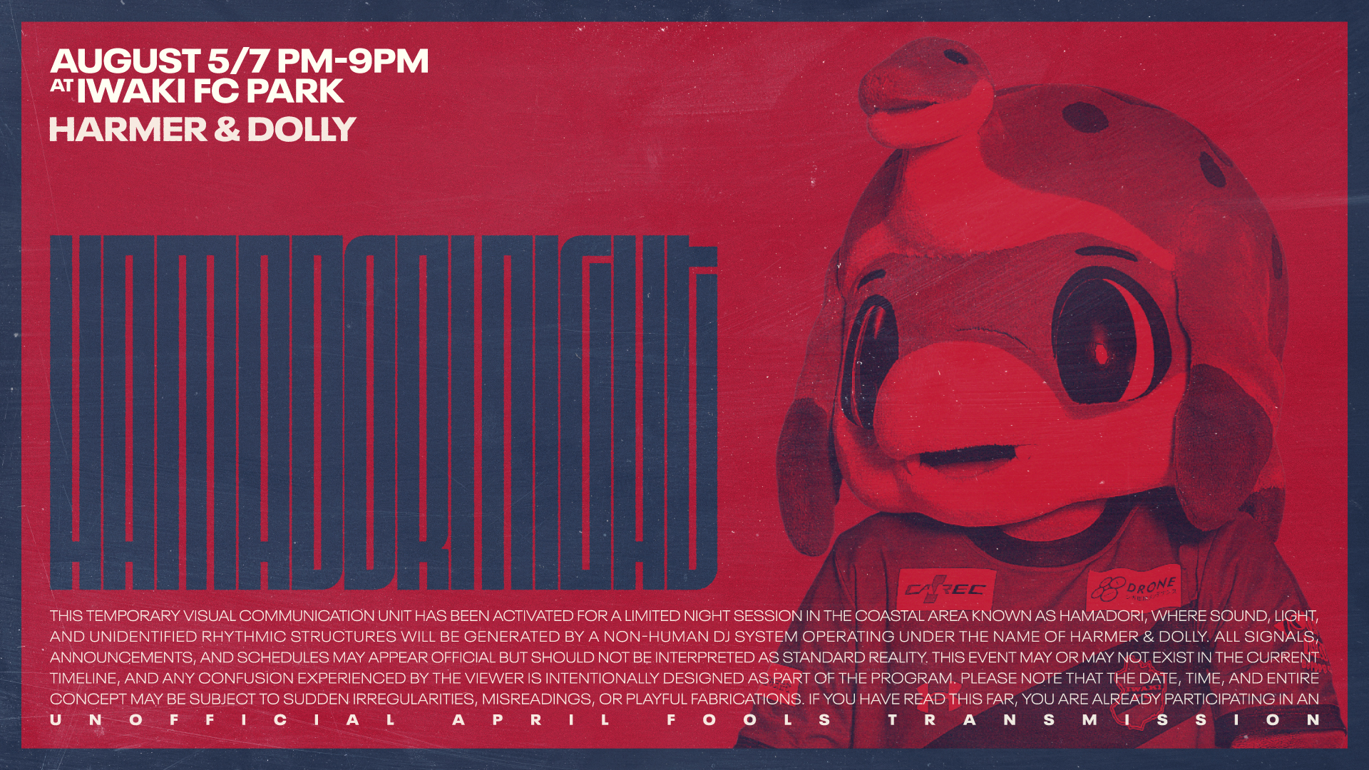 このたび、いわきFCは、8月5日(水)にいわきFCパークにて、ハーマー&ドリーがDJを務める一夜限りの音楽イベント「HAMADORI NIGHT」を開催いたしますので、お知らせします。