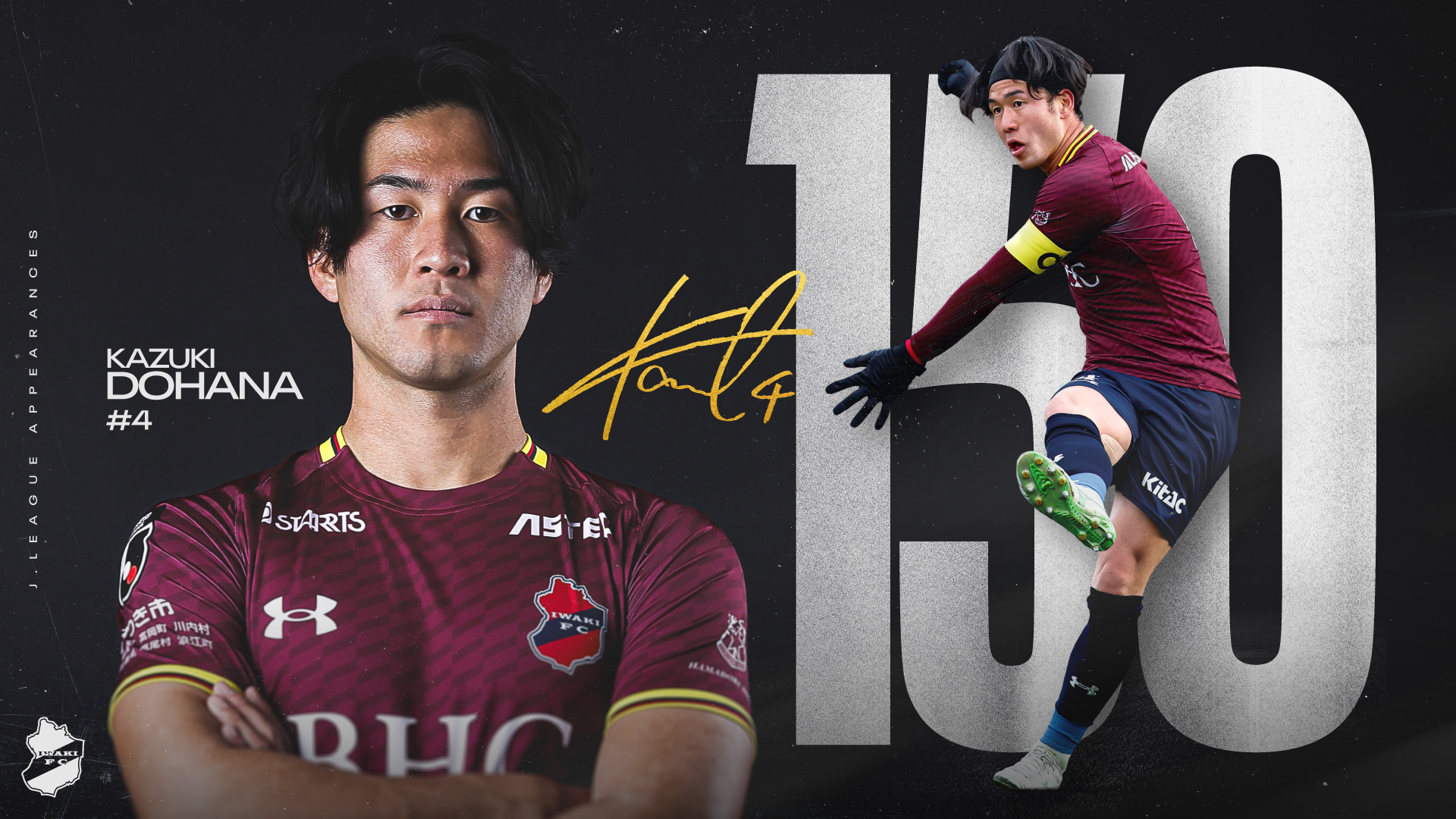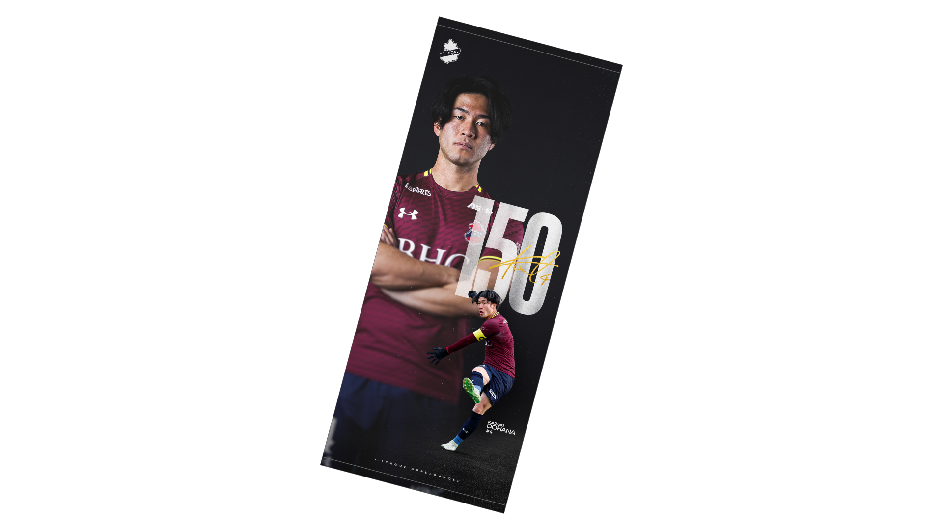 このたび、堂鼻起暉 選手のJリーグ通算100試合出場を記念し、記念グッズ5点の受注販売をいたしますので、お知らせします。